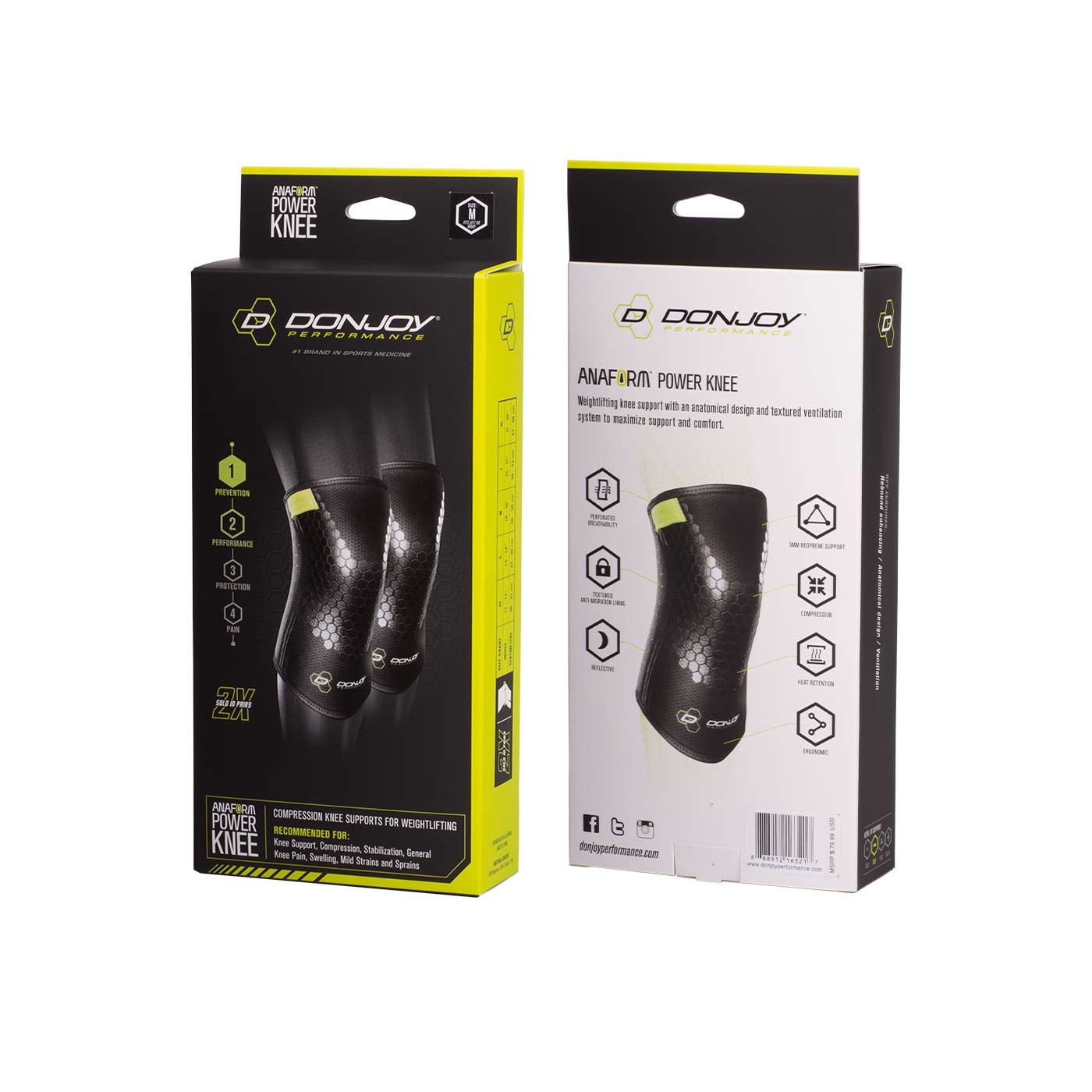 Our Anaform Power Knee sleeves delivers knee support, compression and heat retention for general knee pain relief, swelling and mild knee sprains and strains. With mid-level support, the Anaform Power Knee helps provide squat rebound for enhanced performance, textured lining for ventilation and breathability, and neoprene for compression. Thin and lightweight, athletes can wear on the field, in the gym or under clothing for all-day relief. Sold in pairs.