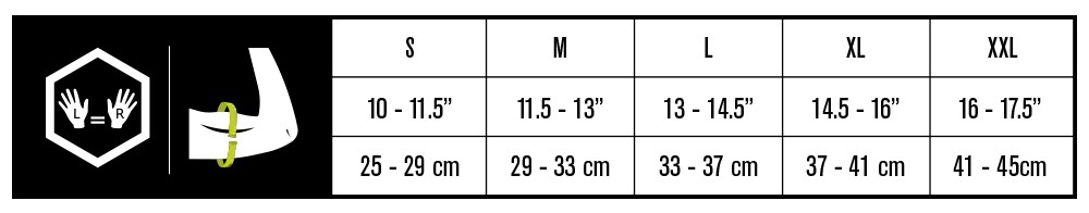 Small Medium Large X-Large XX-Large 10 - 11.5" 11.5 - 13" 13 - 14.5" 14.5 - 16" 16 - 17.5" 25 - 29cm 29 - 33cm 33 - 37cm 37 - 41cm 41 - 45cm Instructions